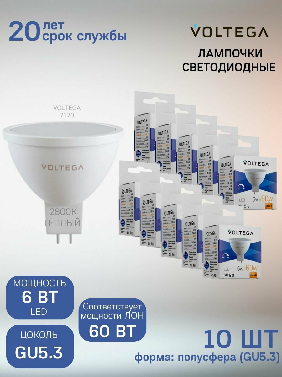 Лампа светодиодная Voltega 7170, GU5.3, GU5.3, 6Вт, 2800 К