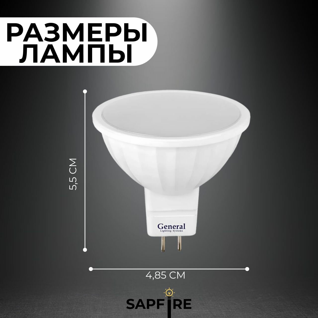 General MR16 GU5.3 7W(450lm) 3000K 2K 220В 50x50 пластик/алюм 632700, Лампа светодиодная