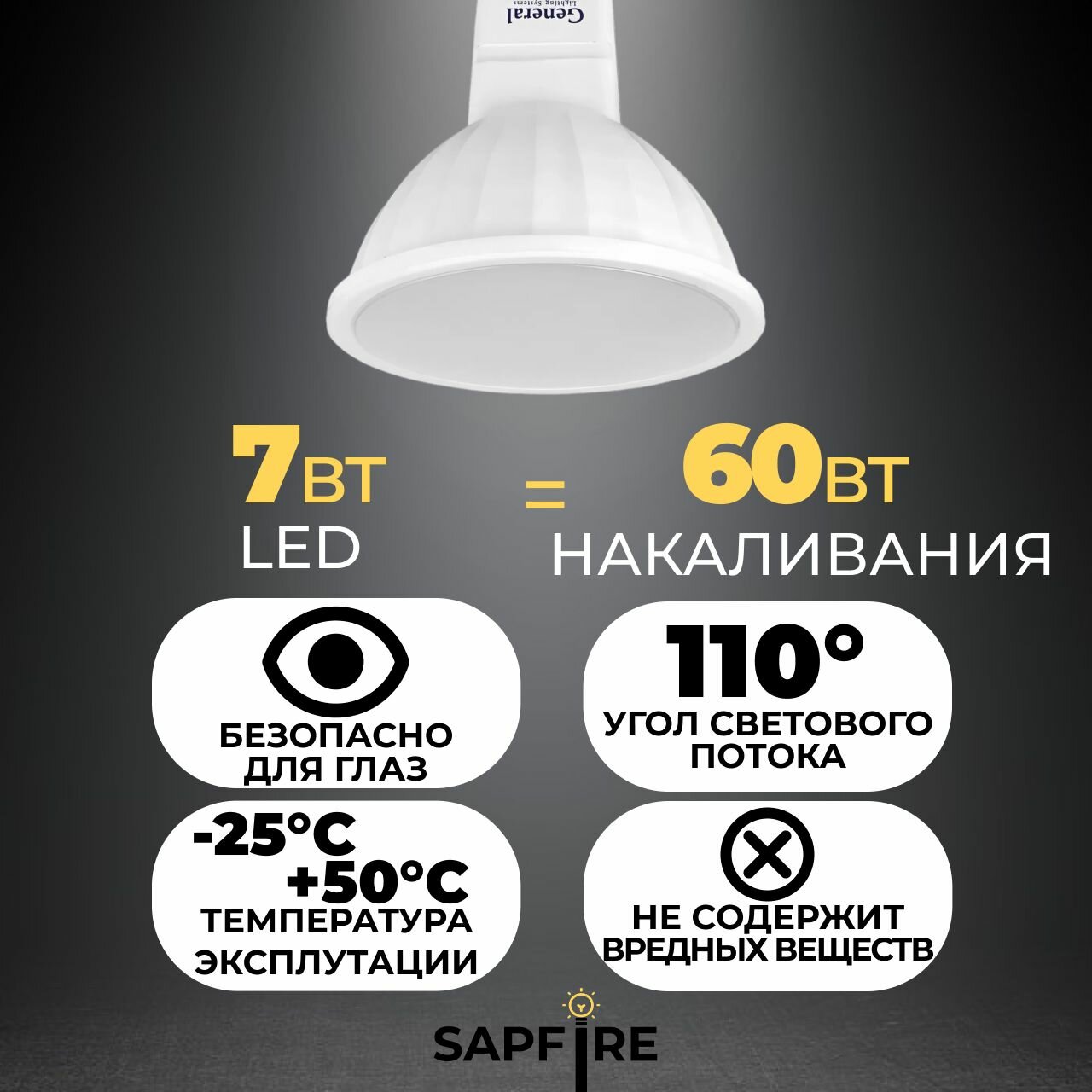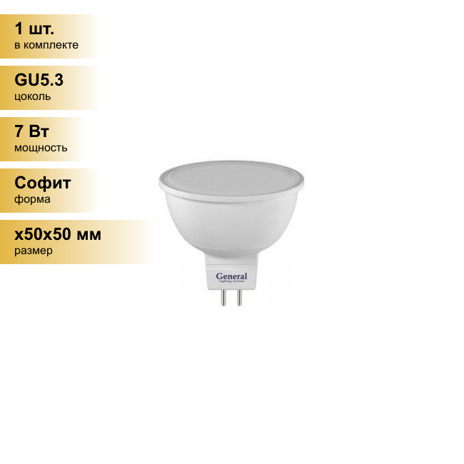 General MR16 GU5.3 7W 3000K 2K 50x50 пластик/алюм 632700 (арт. 614123)
