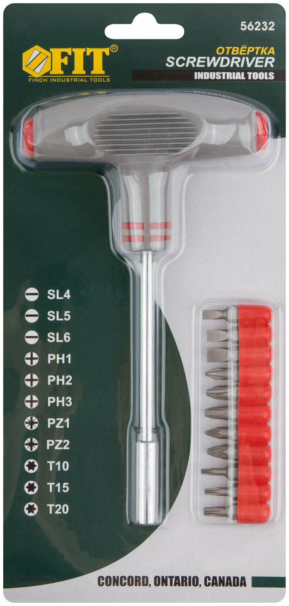 Отвертка Т-образная+11 вставок FIT 56232