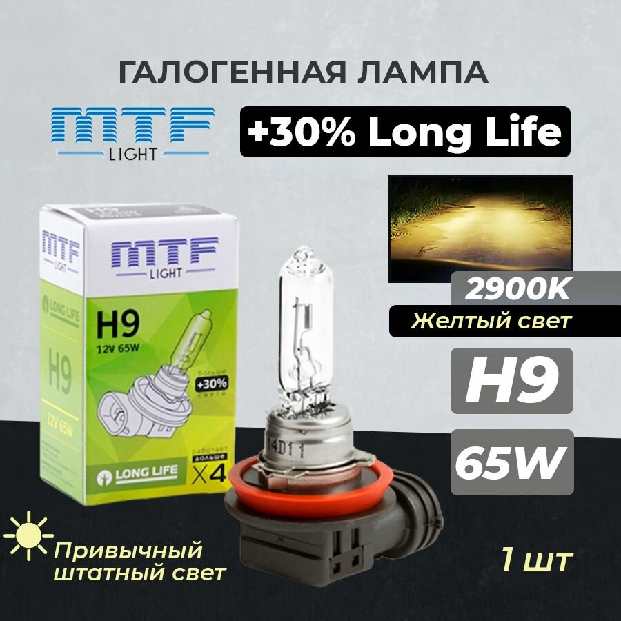 Галогенные лампы MTF Light H9, 12V, 65W, +30% LONG LIFE x4, 2шт.