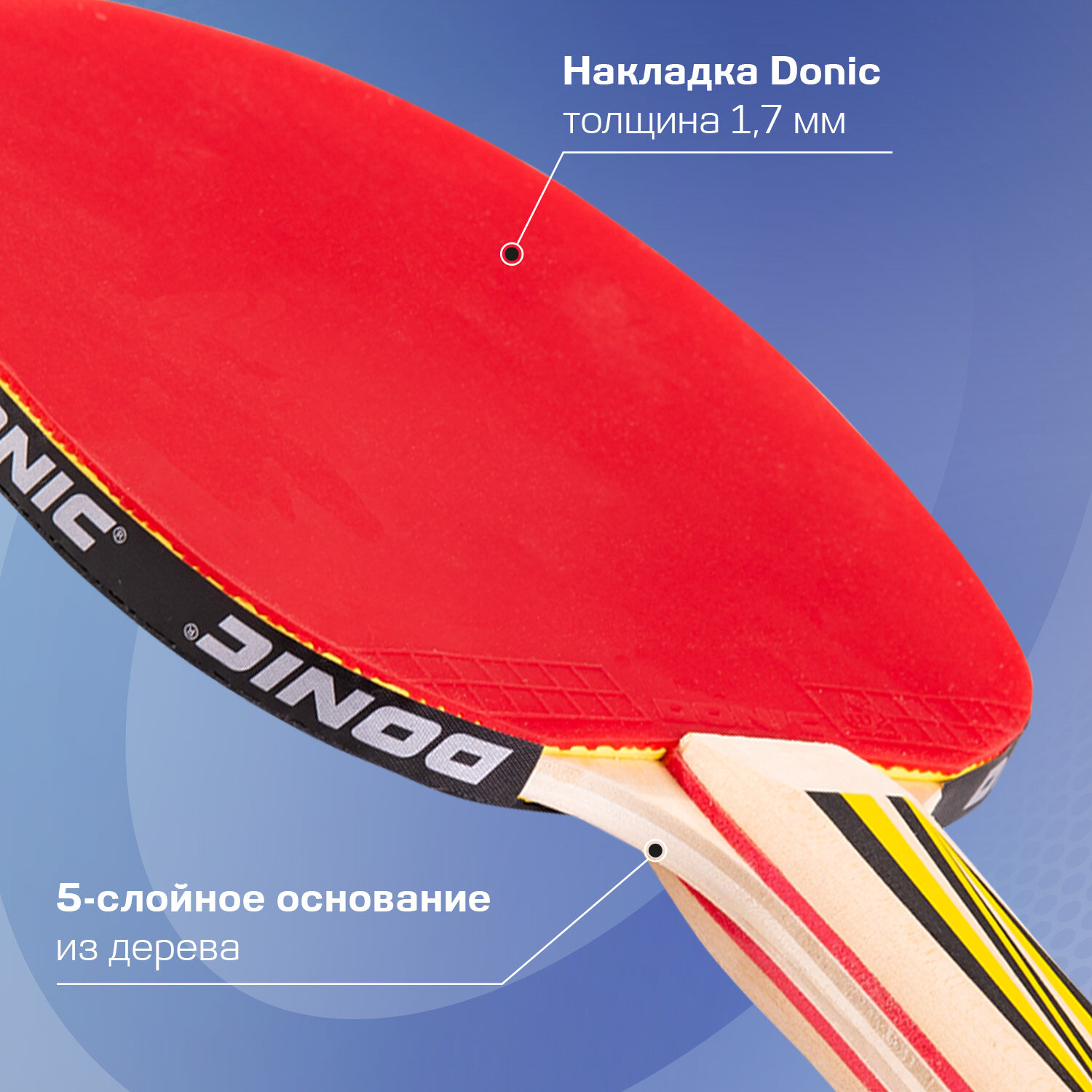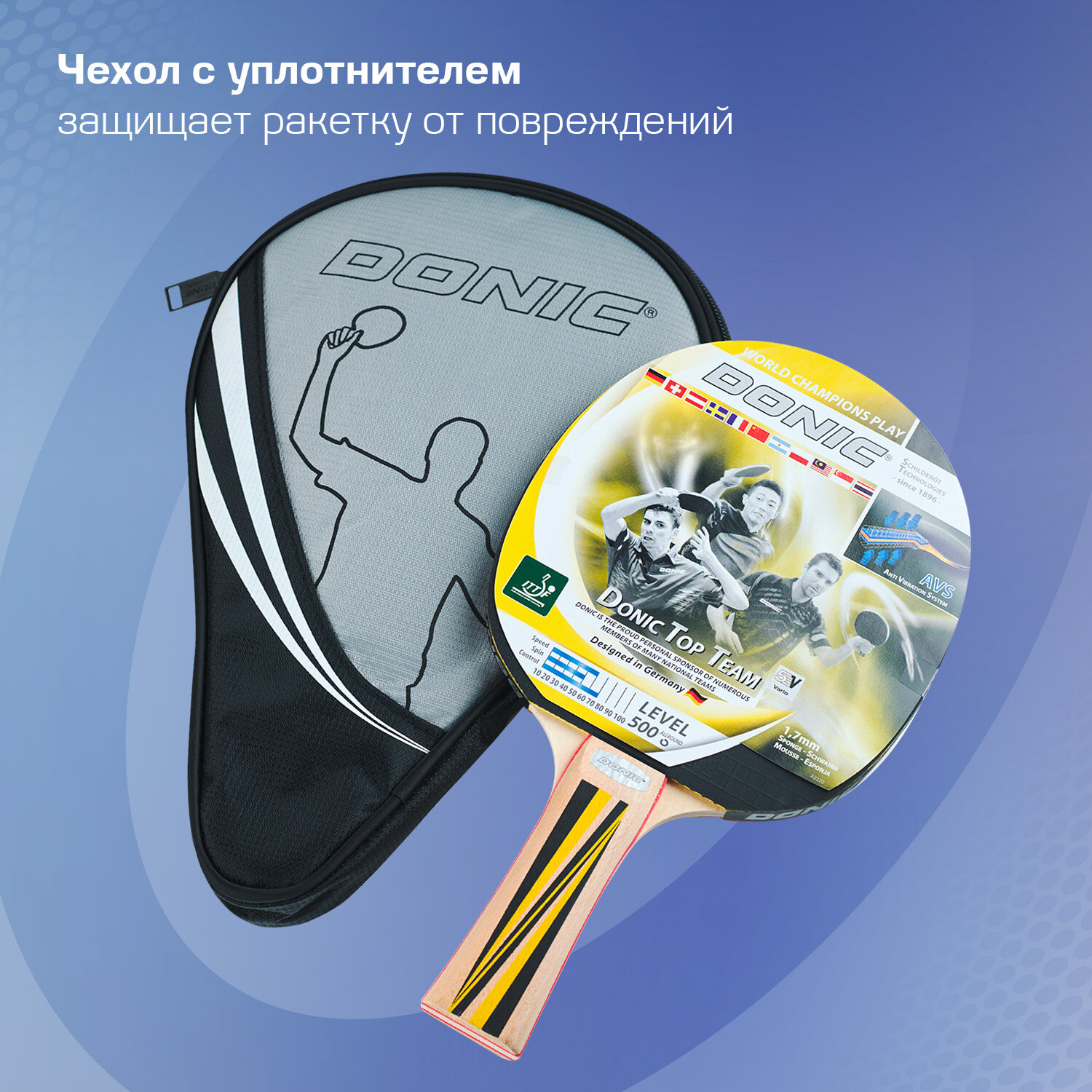 Набор для настольного тенниса Donic Top Team 500 (1 ракетка + 4 мяча + чехол) интересное: