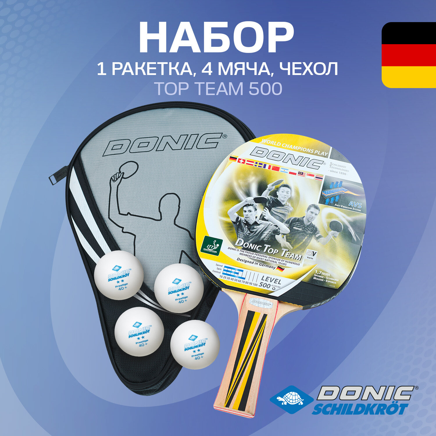 Купить Набор для настольного тенниса Donic Top Team 500 (1 ракетка + 4 мяча + чехол)
