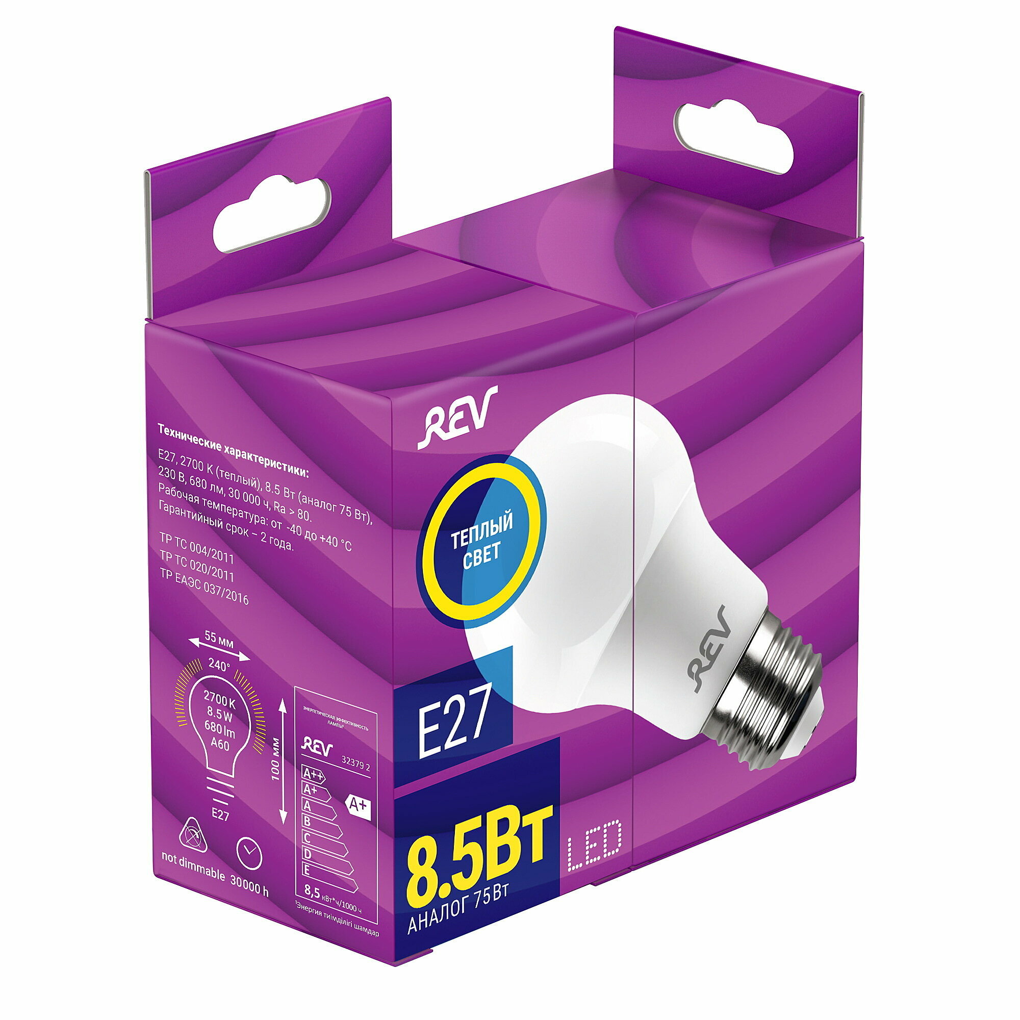 Лампа светодиодная REV 32379 2, E27, A60, 8.5Вт, 2700 К