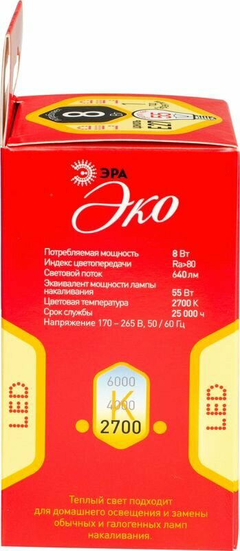 Ниже Вы можете прочитать отзывы на ЭРА Лампа светодиодная ЭРА E27 8W 2700K матовая ECO LED A55-8W-827-E27 Б0032095, ознакомится с подробными характеристиками, посмотреть интересные обзоры и фотографии на ЭРА Лампа светодиодная ЭРА E27 8W 2700K матовая ECO LED A55-8W-827-E27 Б0032095.