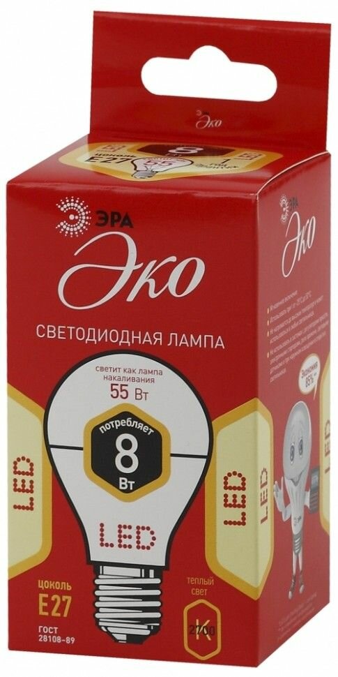 Лампа светодиодная smd A55-8W-827-E27 ECO, ЭРА Б0032095 (1 шт.)