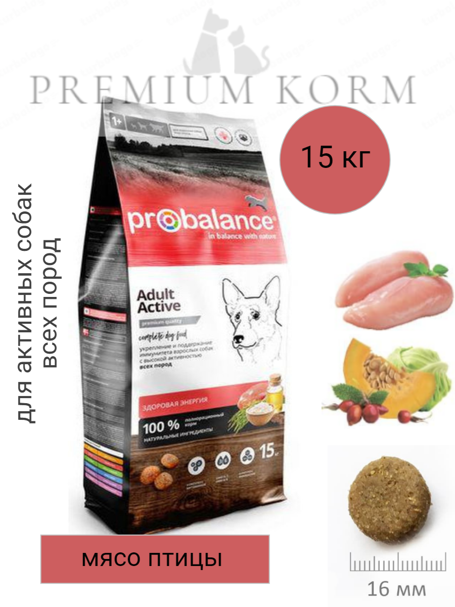 Корм для собак ProBalance Adult Active сухой для взрослых собак с высокой активностью, 15 кг