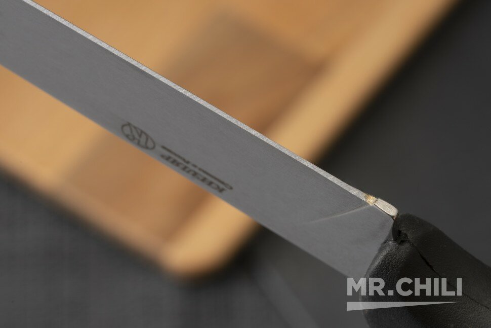 | Дополнительная информация | материал рукояти: эластрон; материал клинка: коррозионно-стойкая сталь 57-59 HRC (AUS-8); толщина клинка: 1.6 мм; конструкция: сплошная жесткая, хвостовик проходит сквозь всю рукоять |