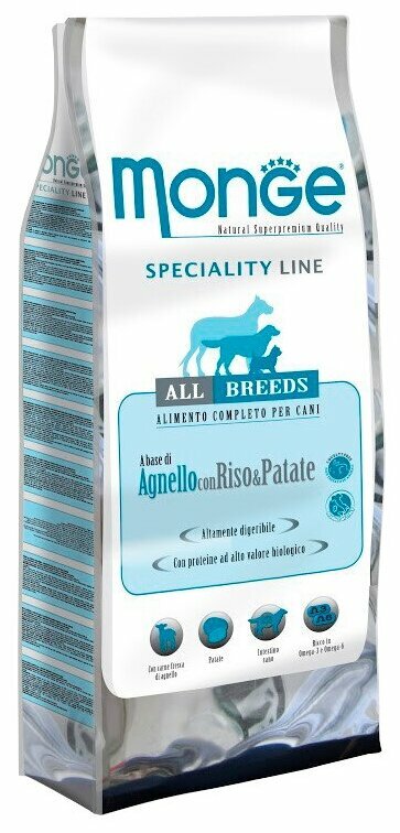 Сухой корм для собак Monge Speciality line, ягненок, с рисом, с картофелем 12 кг
