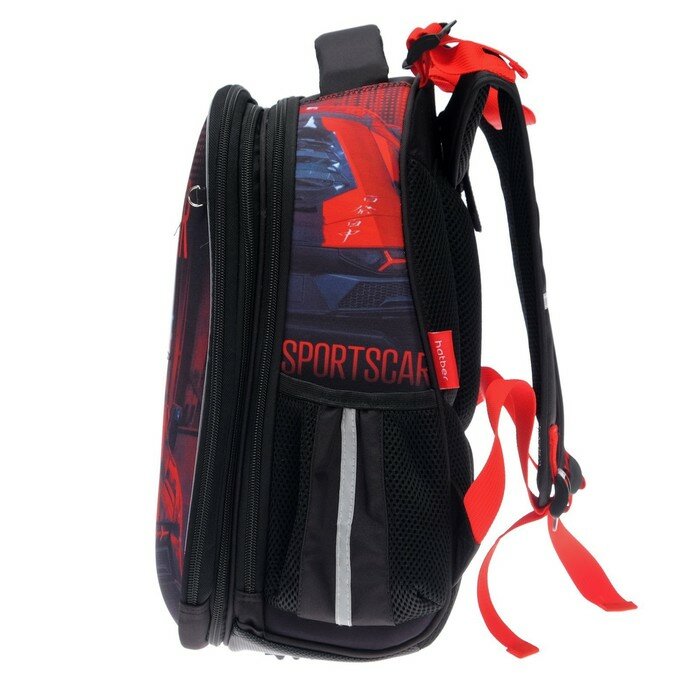 Купить Hatber Рюкзак каркасный 37 х 29 х 17 см, Hatber Ergonomic Classic, Supercar, красный/чёрный NRk_71036