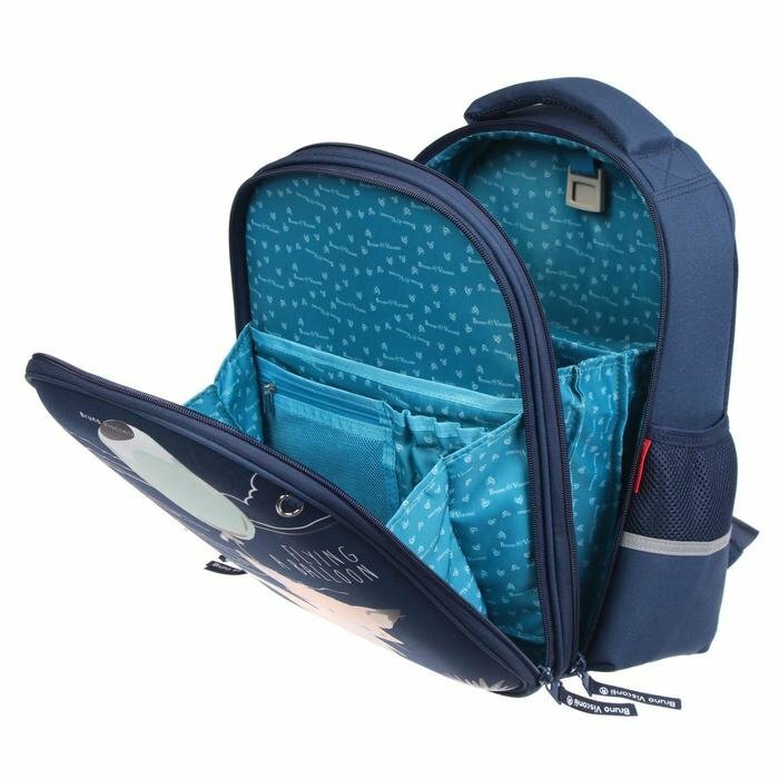 Рюкзак BrunoVisconti, классическая капсула, синий с эргономичной спинкой, «зверушки И шарики.лисенок», Арт. 12-009-066/02