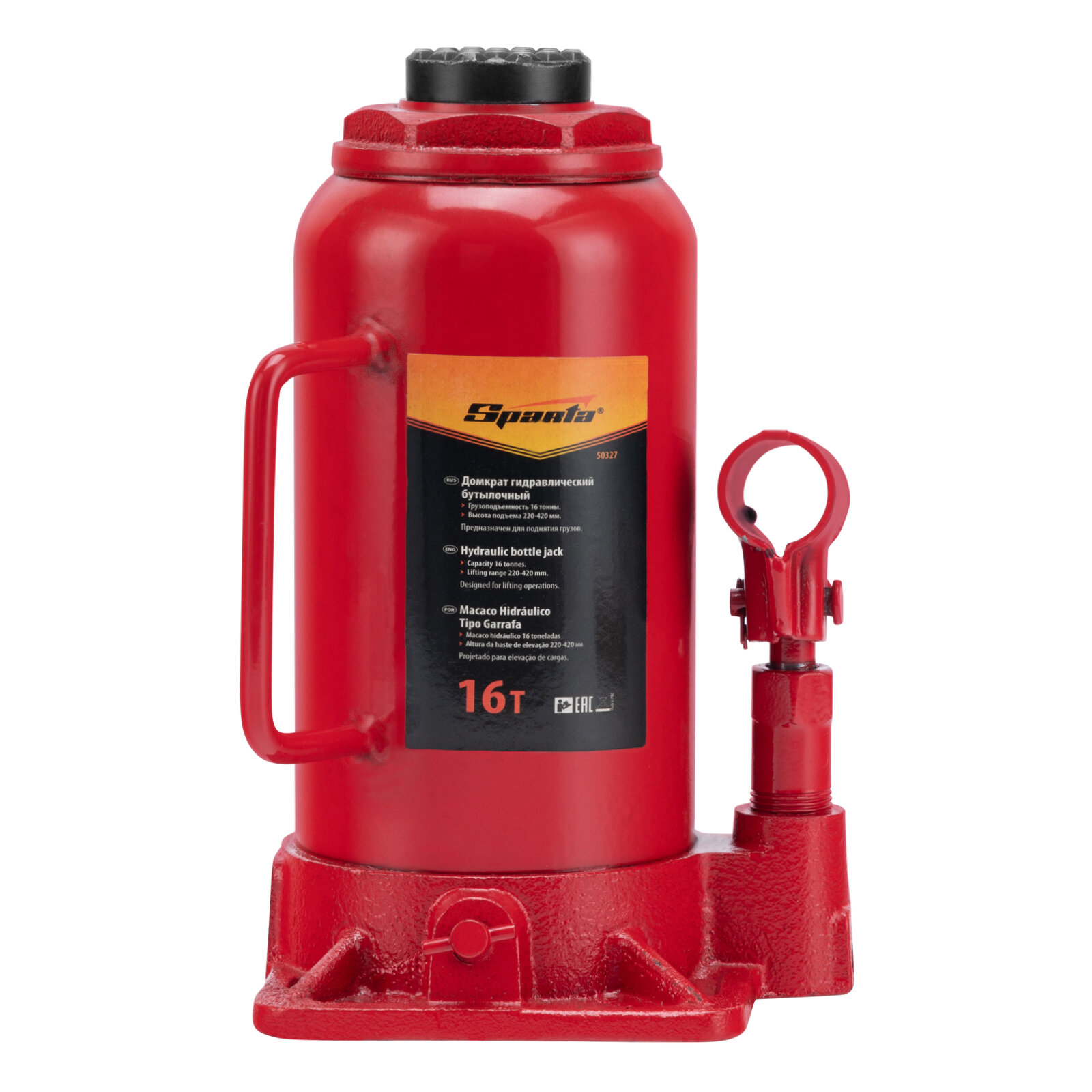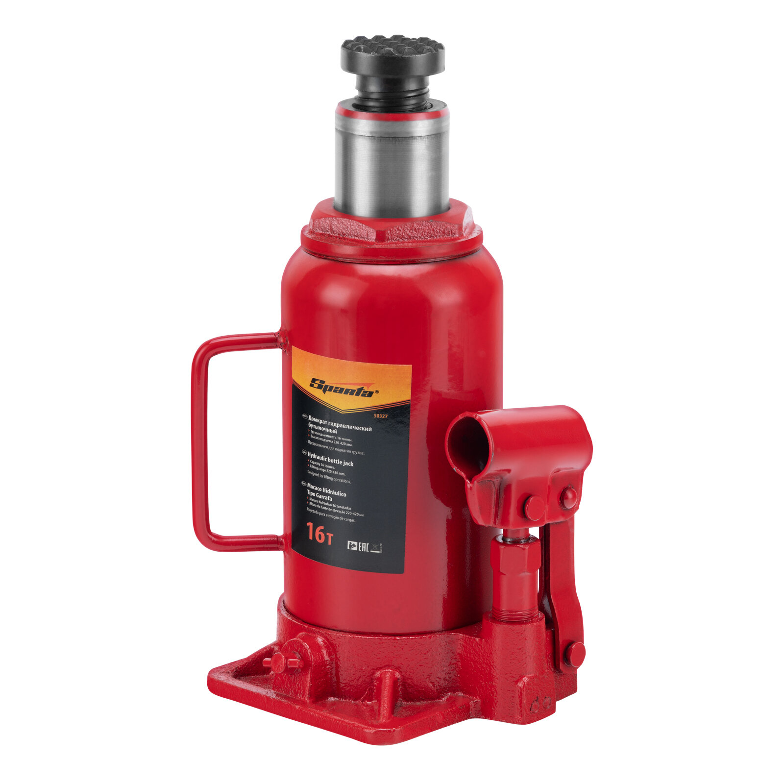 Домкрат гидравлический бутылочный, 16 т, h подъема 220-420 мм Sparta 50327