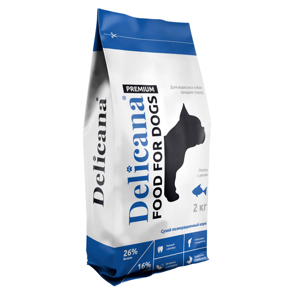 DELICANA для собак средних пород (лосось с рисом) (вес: 2, упаковка: 2 кг.)