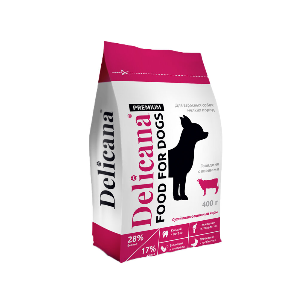 Корм сухой Delicana для собак мелких пород Говядина с овощами 400 гр