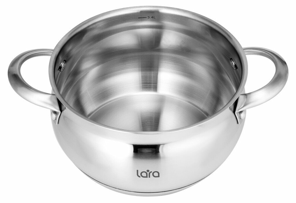 LR02-422 Кастрюля LARA (нерж) серия <майами> 3,5л 20x11,5см, капс. 9-ступенч.дно, крышка, шкала
