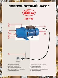 Насос поверхностный JEMIX JET-100 интересное: