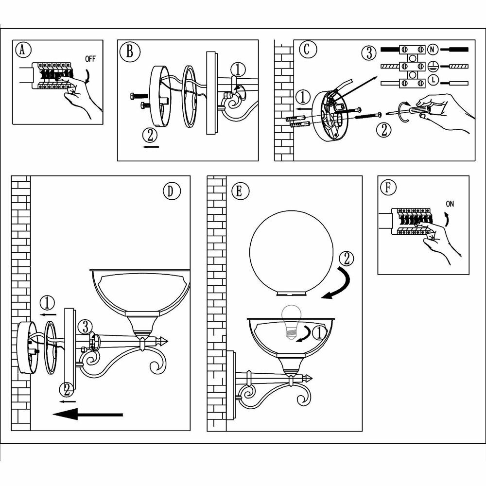 Светильник уличный настенный шар Arte lamp A1491AL-1BK Monaco