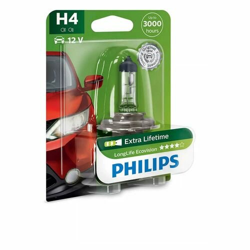 Лампа галогенная Philips Longlife Ecovision, H4 3100K, 60/55W, блистер, 1 шт