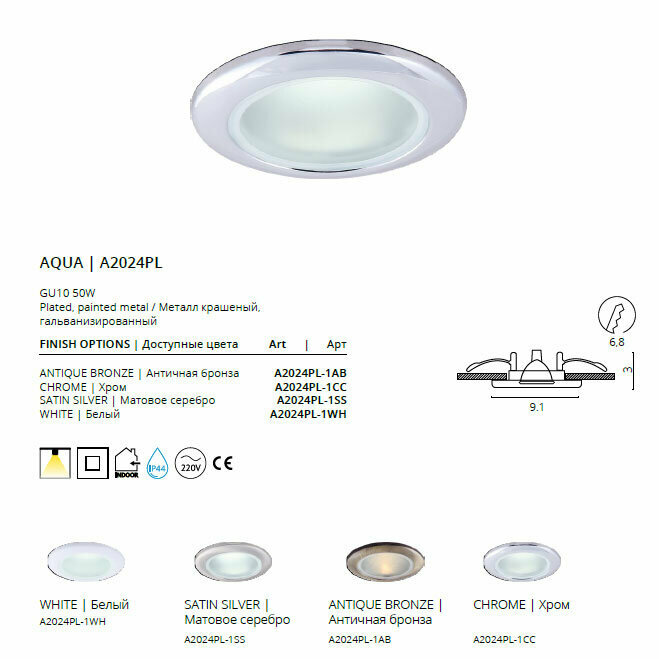 Ниже Вы можете прочитать отзывы на Точечный встраиваемый светильник Arte Lamp AQUA A2024PL-1SS, ознакомится с подробными характеристиками, посмотреть интересные обзоры и фотографии на Точечный встраиваемый светильник Arte Lamp AQUA A2024PL-1SS.