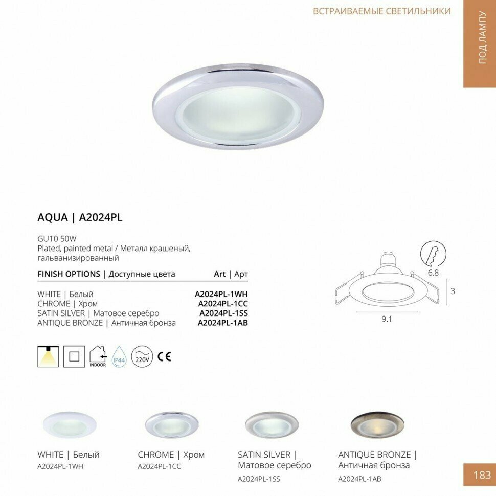 Точечный встраиваемый светильник Arte Lamp AQUA A2024PL-1SS интересное:
