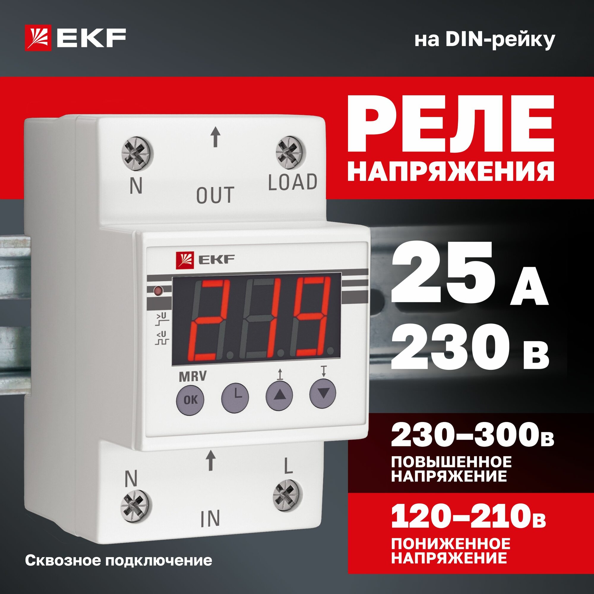 Реле напряжения EKF с дисплеем MRV 25A PROxima MRV-25A