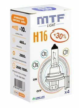 Лампа галогенная MTFLIGHT LONG LIFE x4 12V H16 19W HS1216 интересное: