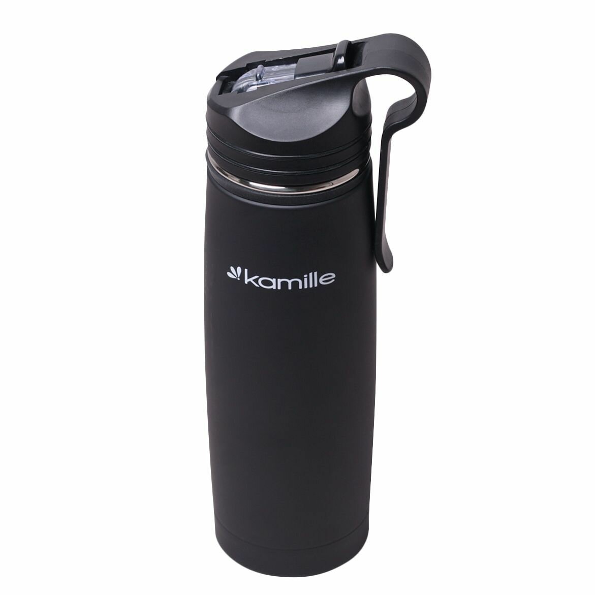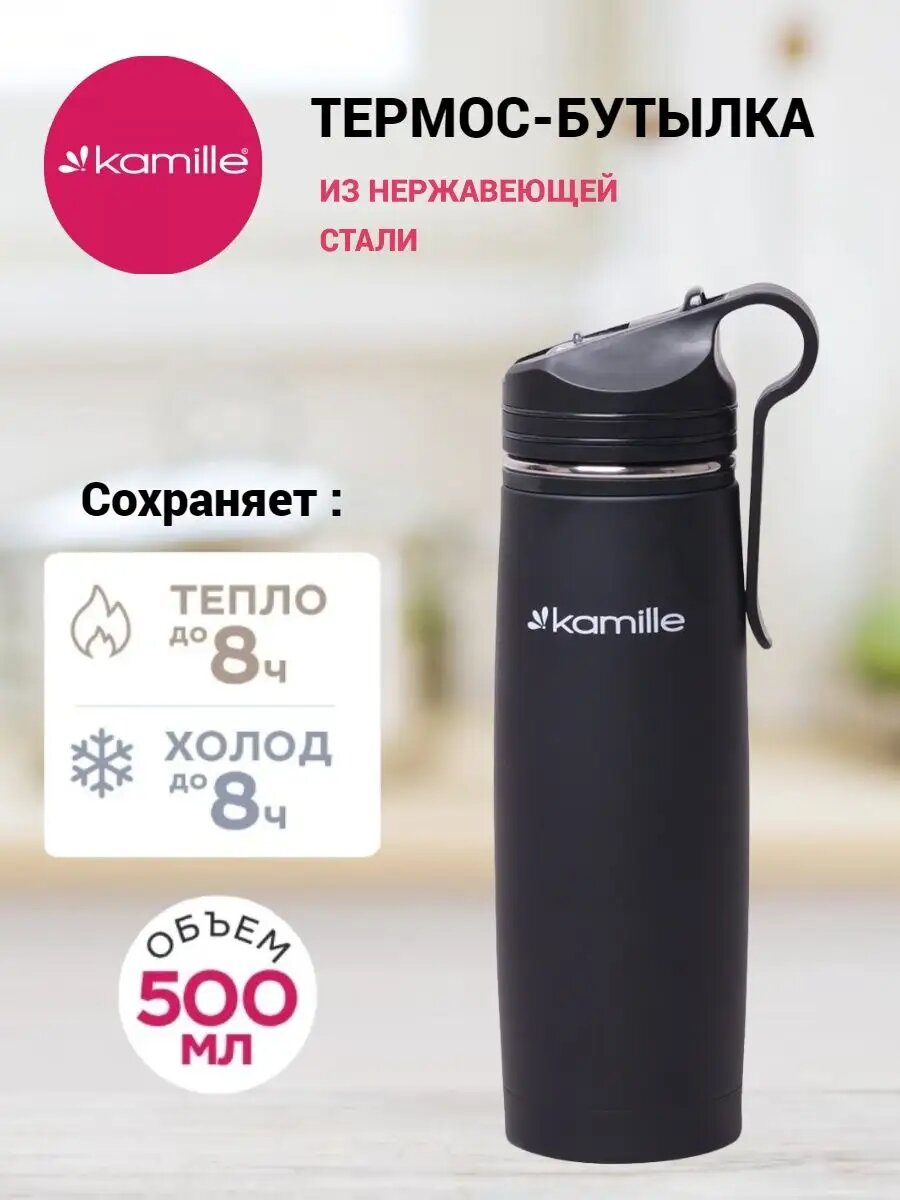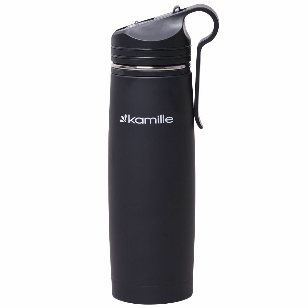 Купить Термос-Бутылка спортивная 500 мл. Kamille KM-2058 из нержавеющей стали с трубочкой и клипсой (2058 / черный)