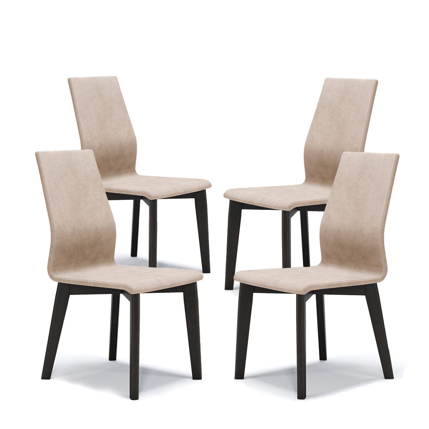 Стул ANNI HAUS A-vito, 4 шт, массив бука, велюр, цвет: темный орех/бежевый