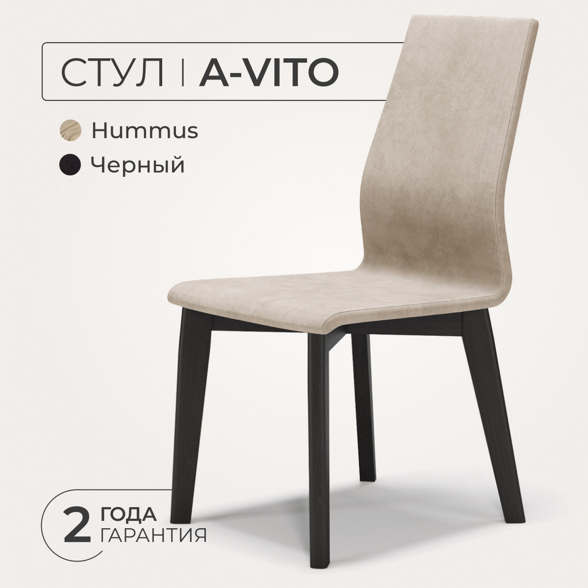 Стулья для кухни ANNI HAUS A-vito, сет 2 шт, массив бука, велюр, цвет: черный/hummus