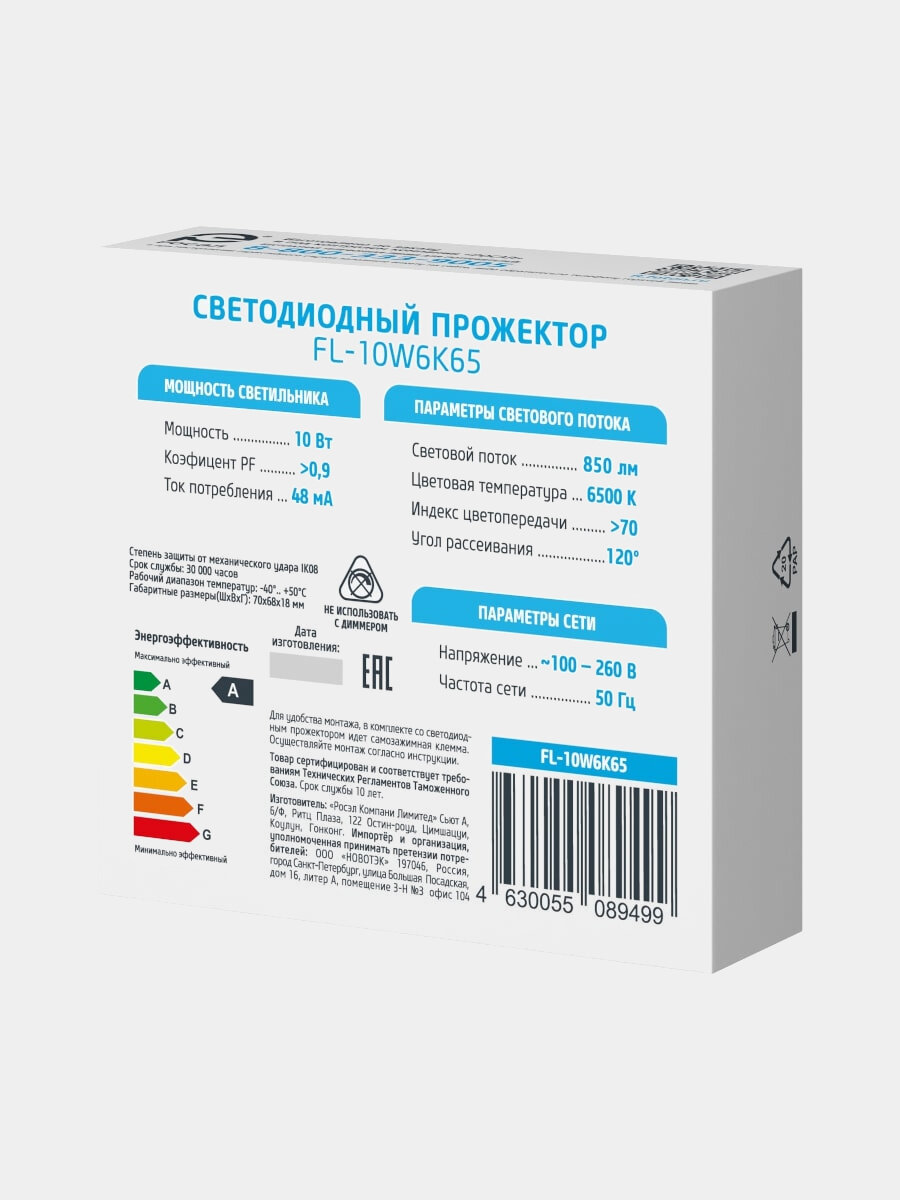 Светодиодный сетевой прожектор фотон FL-10W6K65 10W 24533