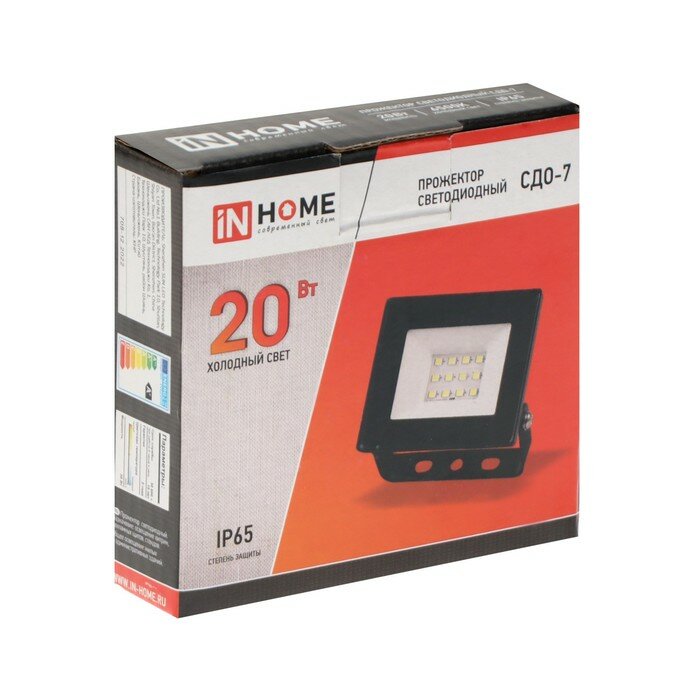Прожектор светодиодный IN HOME СДО-7, 20 Вт, 230 В, 6500 К, IP65, черный интересное: