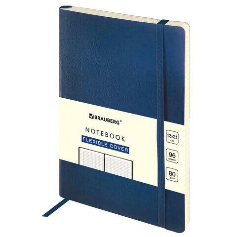 Блокнот А5 130х210мм, BRAUBERG ULTRA, под кожу, 80г/м2, 96л, клетка, темно-синий, 113005