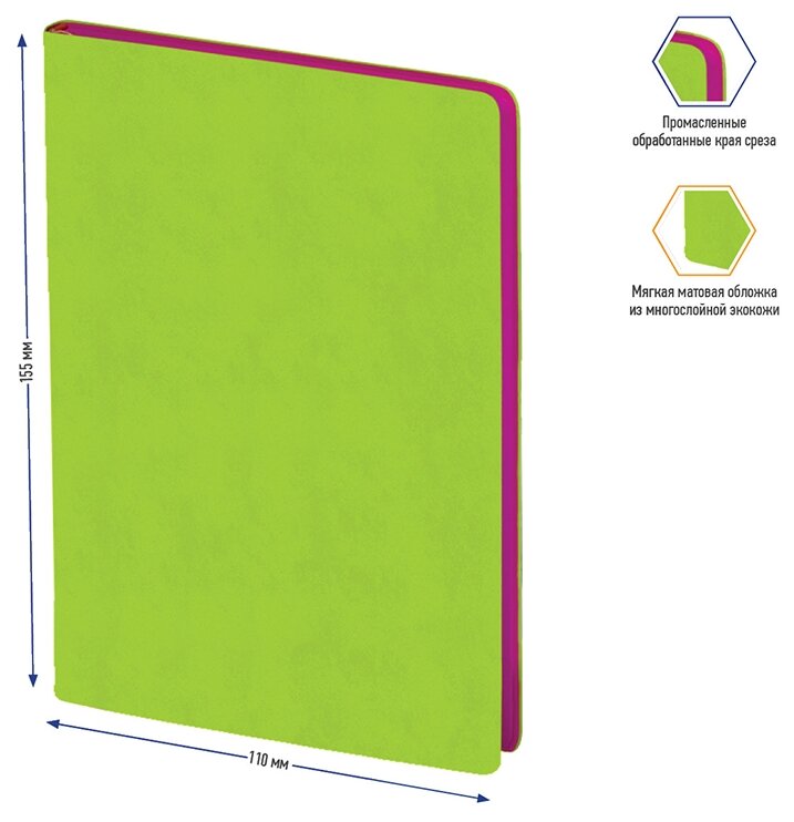 Записная книжка Berlingo "Fuze", А6, 80 л, кожзам, цветной срез, салатовый