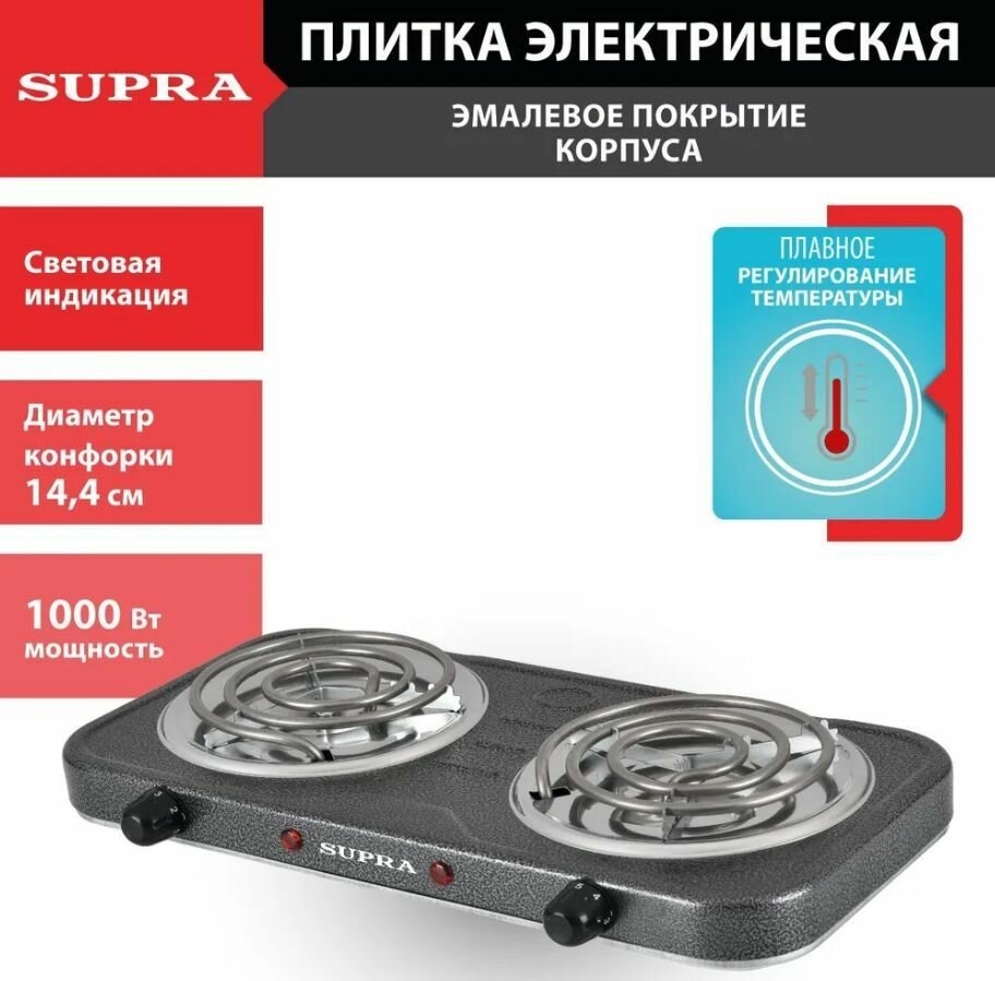Плита настольная электрическая SUPRA HS-211 (2-конф, спираль)