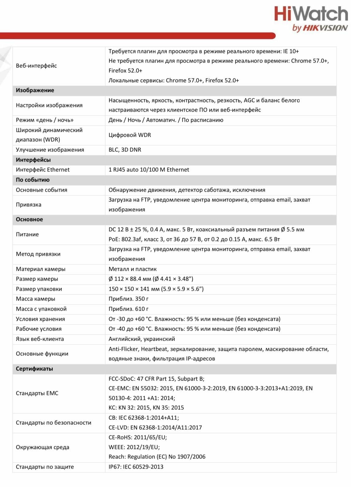 | Дополнительная информация | безопасность: защита паролем, сложный пароль, шифрование HTTPS, фильтрация IP-адресов, журнал проверки безопасности, базовая и дайджест-аутентификация для HTTP/HTTPS, TLS 1.2, WSSE |