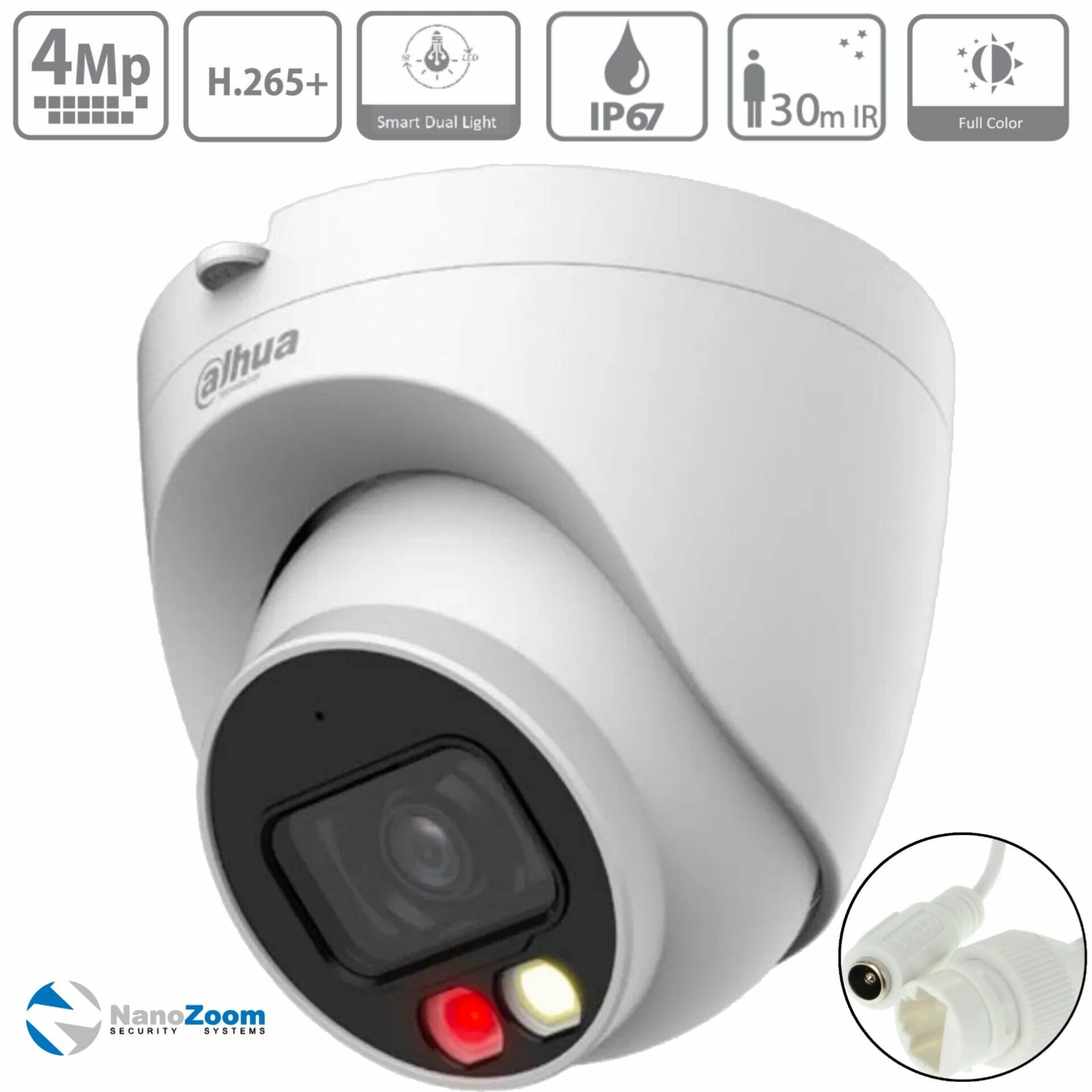 DAHUA Видеонаблюдение DH-IPC-HDW2449TP-S-IL-0360B Уличная турельная IP-видеокамера Smart Dual Light с ИИ 4Мп, 1 2.9” CMOS, объектив 3.6мм,
