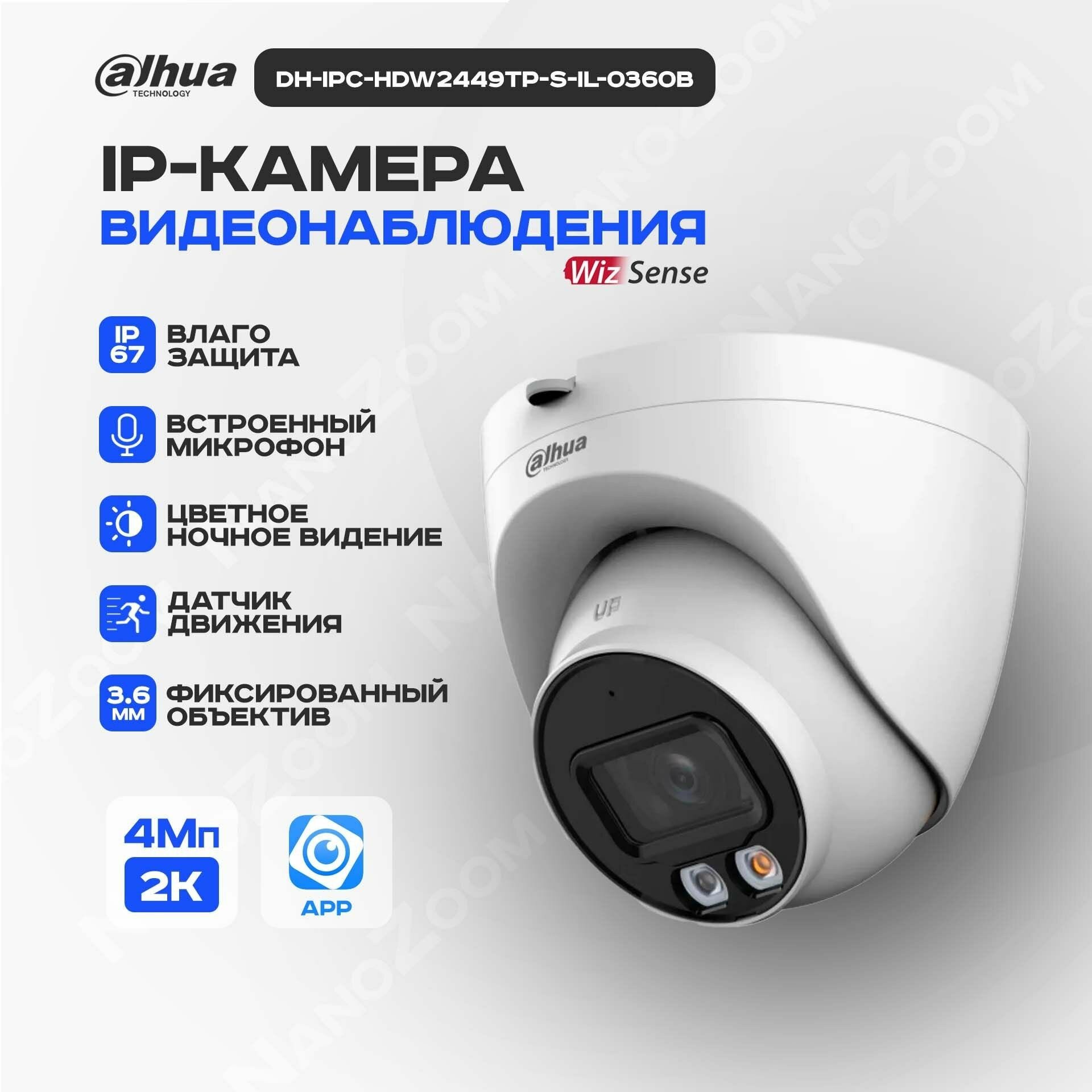 Видеокамера Dahua DH-IPC-HDW2449TP-S-IL-0360B уличная купольная IP-видеокамера 4Мп 1/2.7” CMOS объектив 3.6мм
