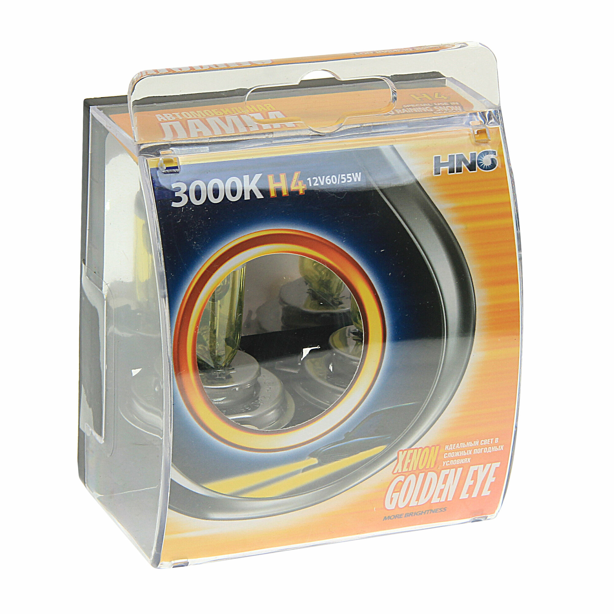 Галогенная лампа H4 (60/55) P43t GOLDEN EYE 3000K (2шт) 12V HNG/Автолампы HNG-12443GE2