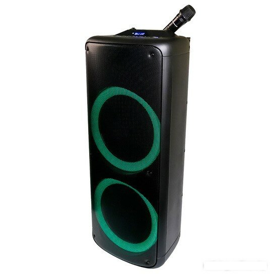 | Особенности | FM-радио / дисплей / караоке / поддержка microSD / ручка / световые эффекты / Подключение электрогитары / беспроводной караоке микрофон / колёсики |