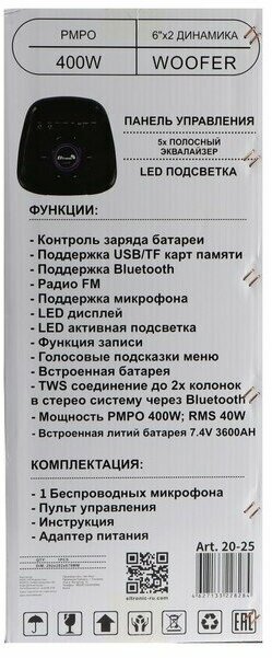 Портативная акустика ELTRONIC 20-25 DANCE BOX 100 40 Вт, черный