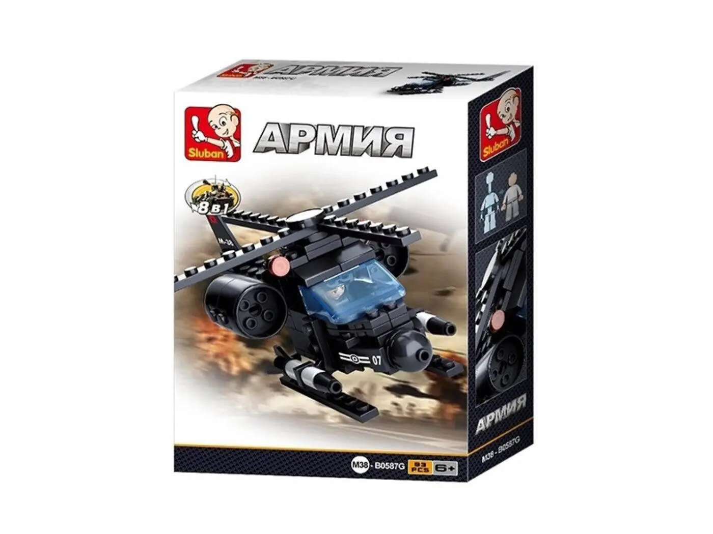 Конструктор SLUBAN 93 дет. Армия. Вертолет (8в1, +фигурка, в коробке, от 6 лет) M38-B0587G, (Рыжий к
