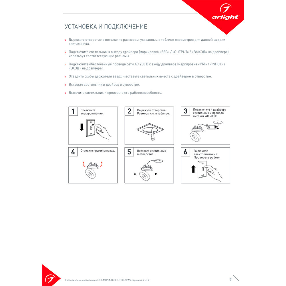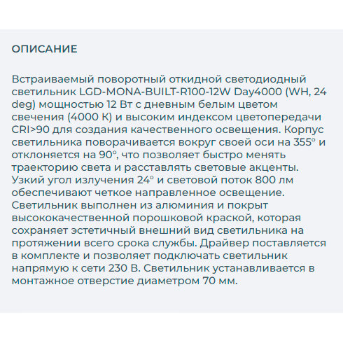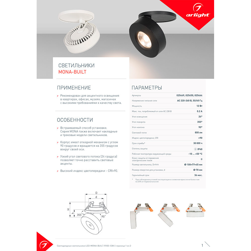 025449 Светильник LGD-MONA-BUILT-R100-12W Day4000 (WH, 24 deg) (Arlight, IP40 Металл, 3 года)