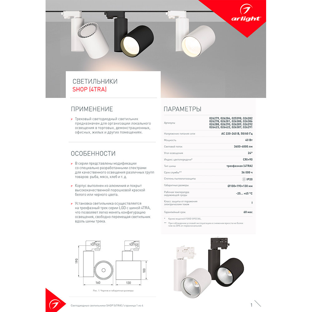 Светильник LGD-SHOP-4TR-R100-40W Day4000 (WH, 24 deg) (Arlight, IP20 Металл, 5 лет) 025398