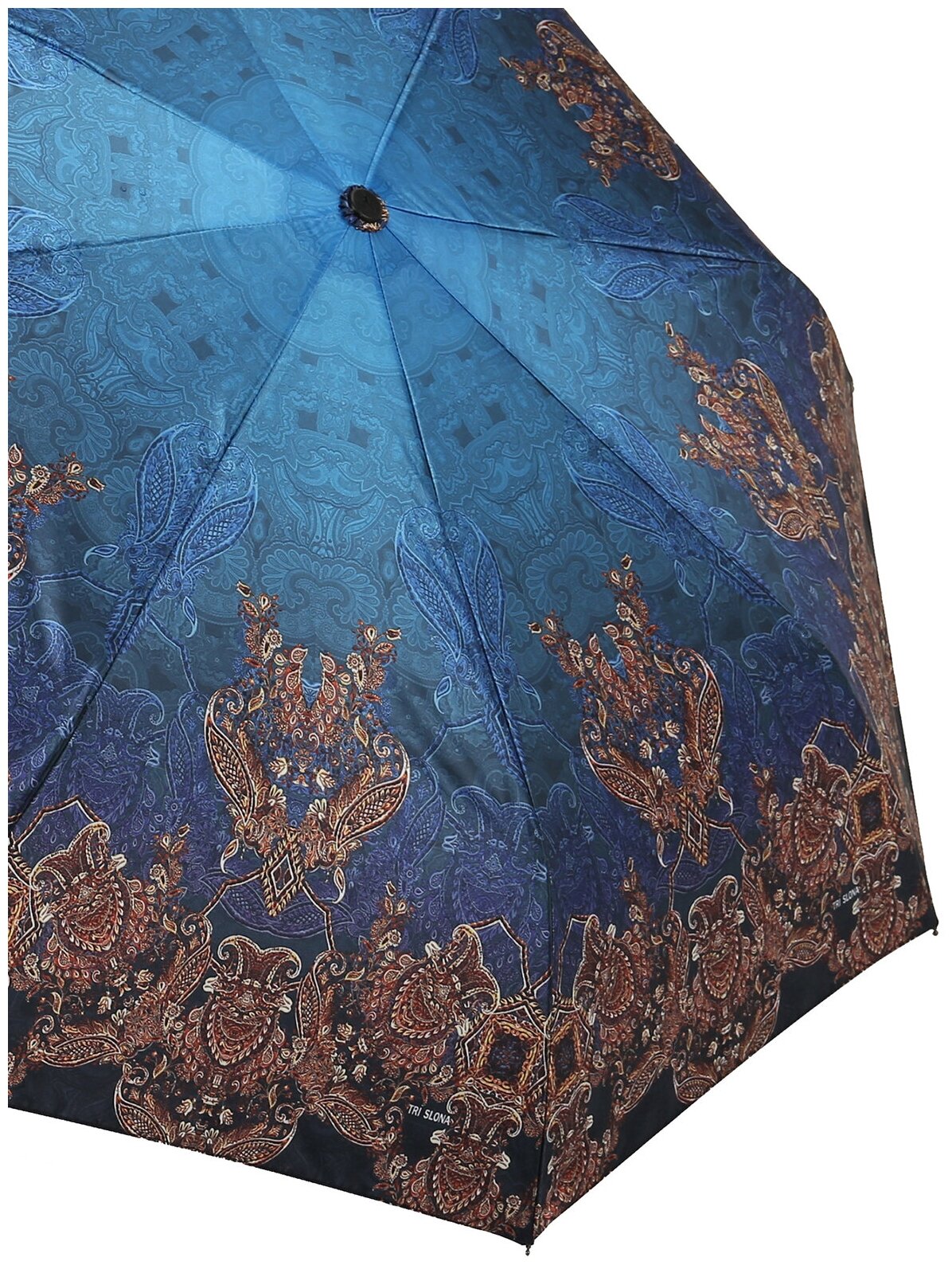 Зонт женский ТРИ слона, 3 сложения полуавтомат, синий