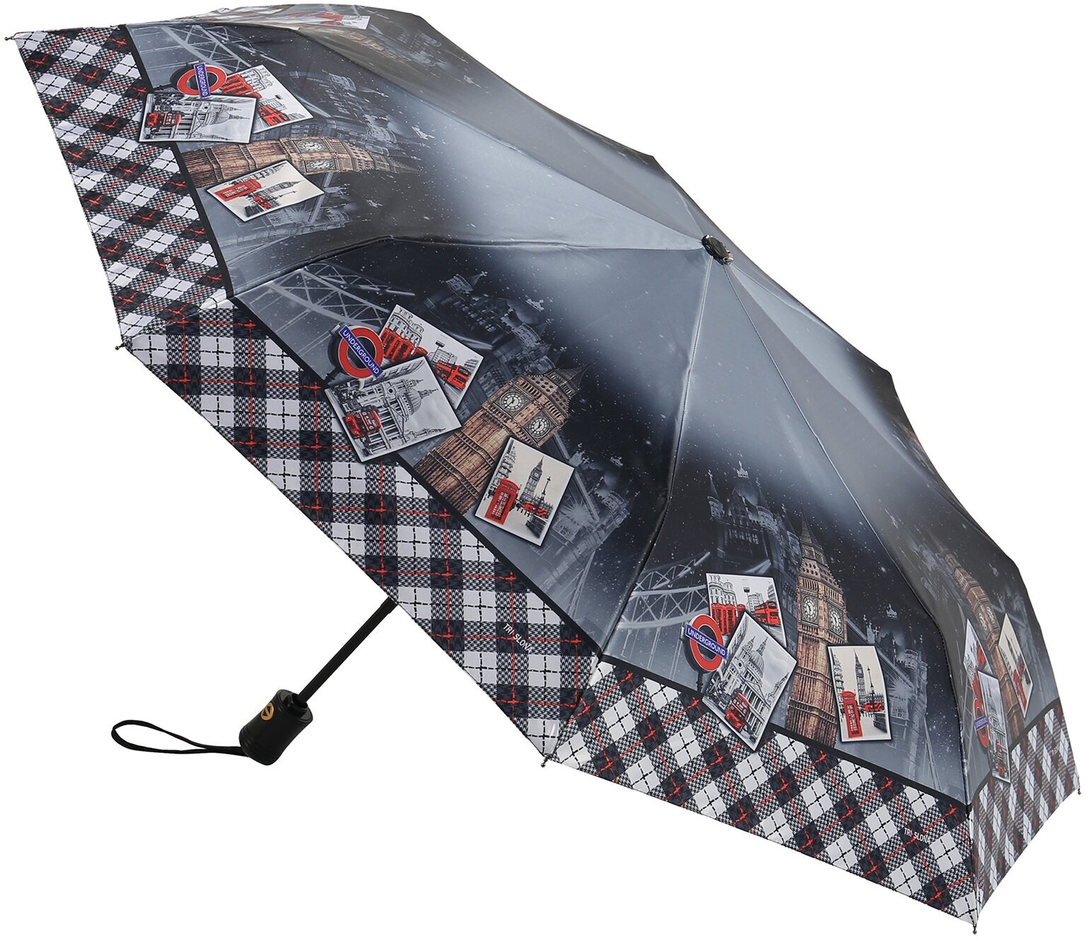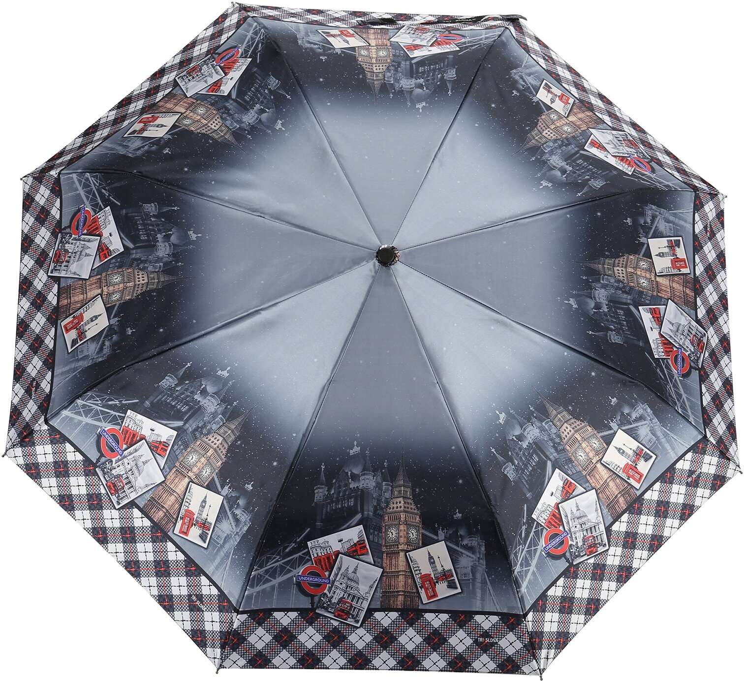 Зонт женский ТРИ слона, 3 сложения полуавтомат, черный, серый