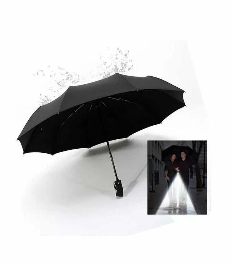 | Плюсы: | отличный зонт который тяжело сломать так ещё и с фонариком |