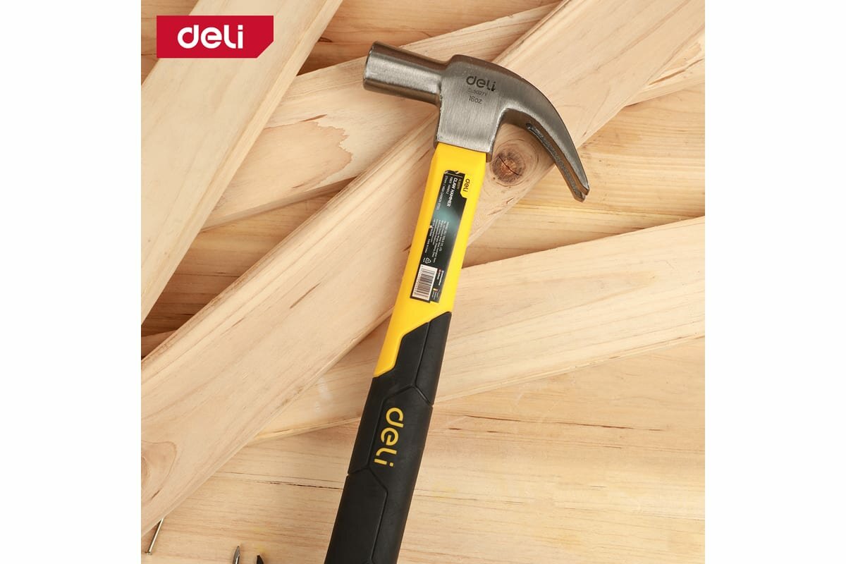 Молоток-гвоздодер Deli DL5027Y 500гр (330мм, фиберглассовая рукоять)
