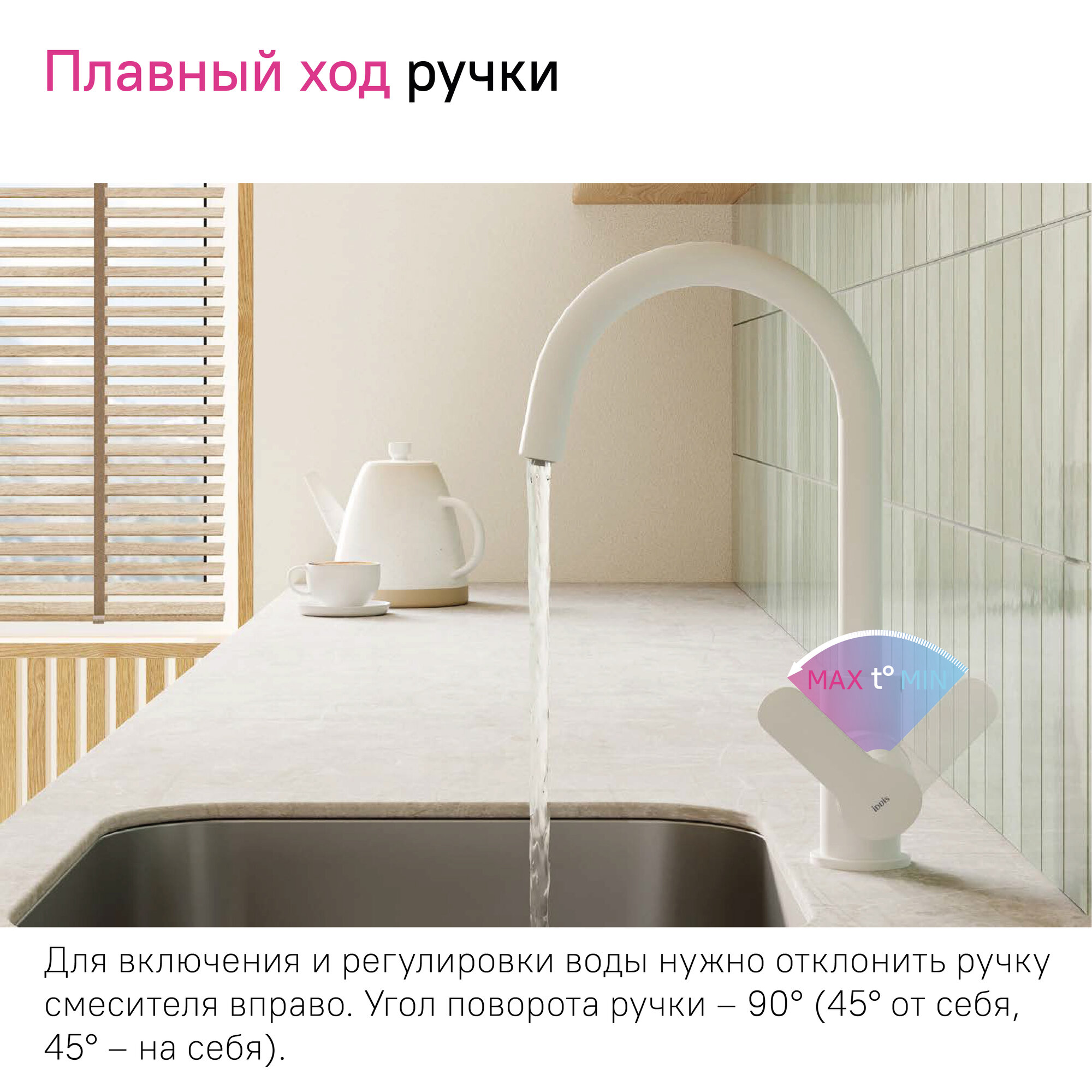 | Плюсы: | белый мат, мягкий ход рычага, подключение к фильтру. |