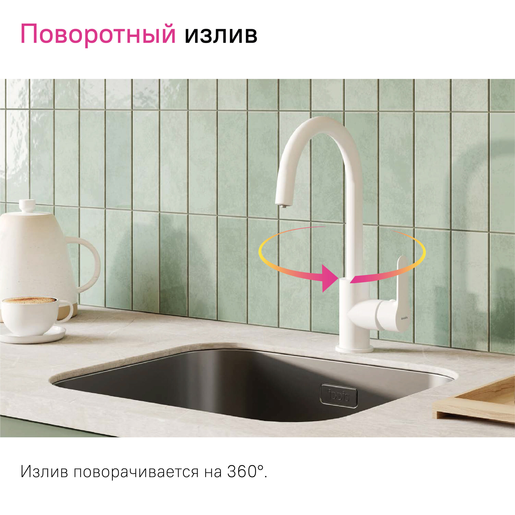 СохранитьСмеситель Iddis для кухни с каналом для фильтрованной воды белый матовый Cuba CUBWTFJi05 интересное: