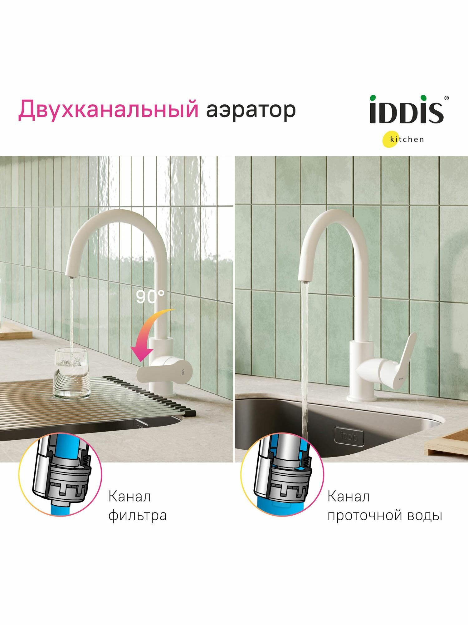 Смеситель для кухни IDDIS Cuba с каналом для фильтрованной воды белый, матовый (CUBWTFJi05)